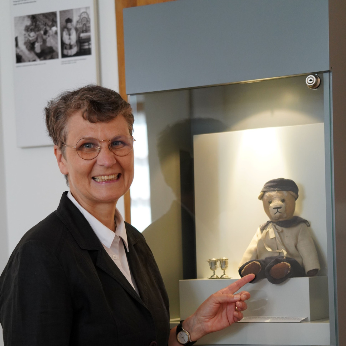 Zum Schluss erinnerte Schwester Christine an ein Ausstellungsstück, das den Papst auf allen Etappen begleitet hat: Es ist der Marktler Teddy-Bär, der den Besucher mit seinen großen Knopfaugen treu anschaut. Der kleine Josef hat diesen einst zu Weihnachten bekommen. Der Teddy erinnert daran, dass „ein großer Glaube und ein kindliches Herz wunderbar zusammenpassen und dass der gescheite Professor und Papst das Staunen in natürlichen und übernatürlichen Dingen nie verlernt hat.“