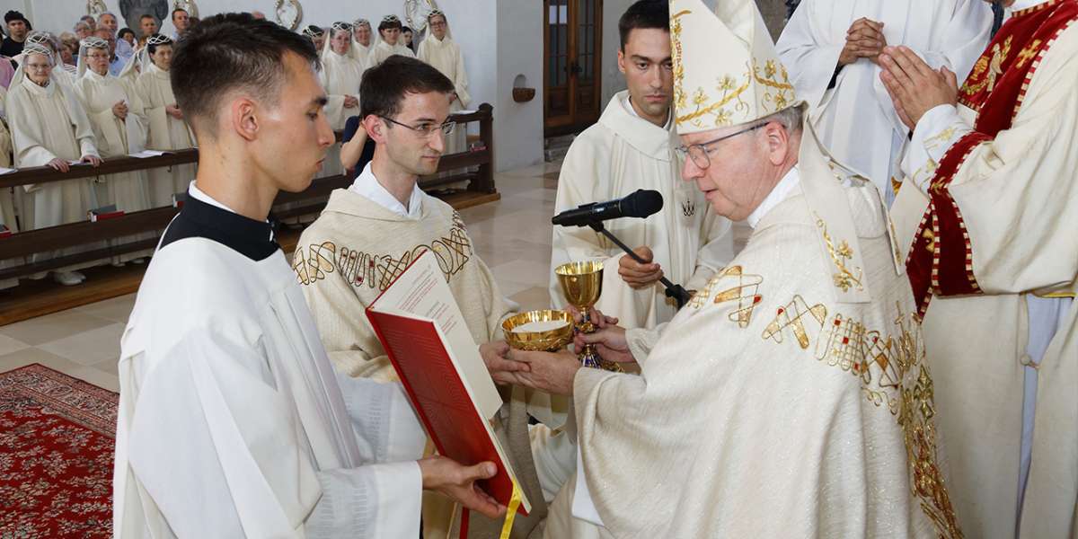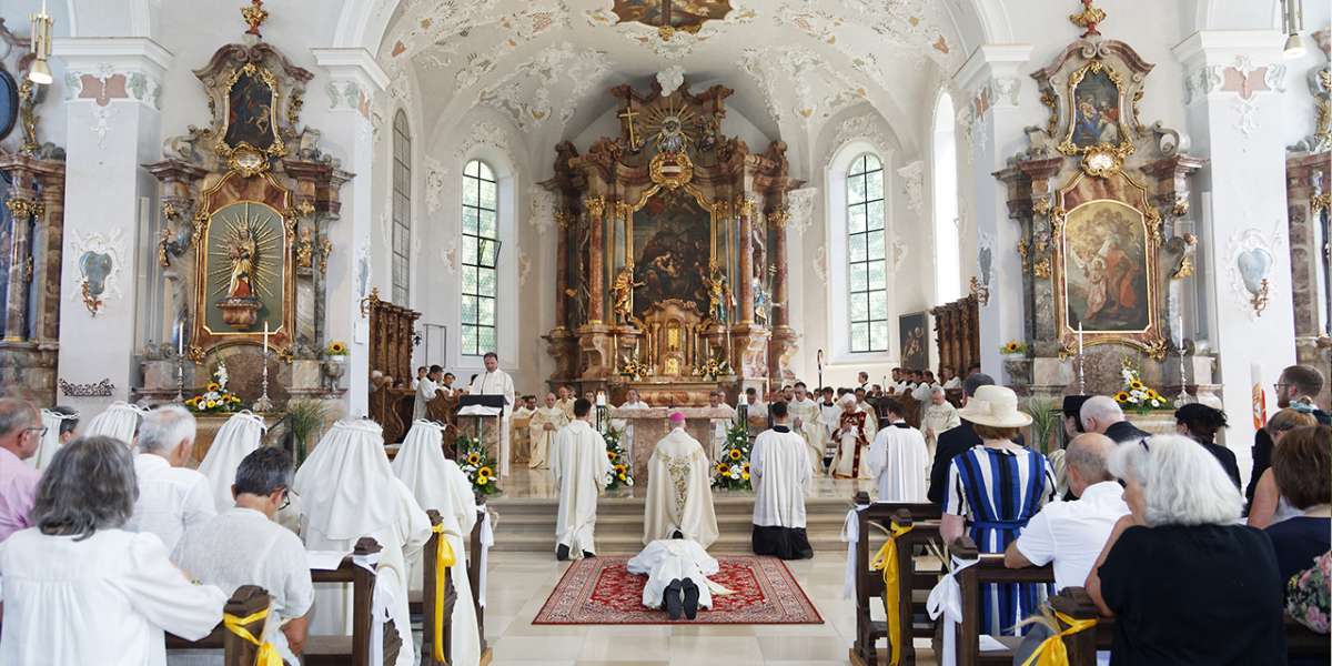 Bregenz, 28. Juni 2025: Am Fest des Unbefleckten Herzens Mariens wurde P. Kilian Deppisch FSO aus Marktheidenfeld (Deutschland) in der neu renovierten Pfarrkirche St. Gallus in Bregenz durch Handauflegung und Gebet von Bischof Benno Elbs, Bischof von Feldkirch, zum Priester geweiht. Mit dabei waren 30 Priester, viele Verwandte, Freunde und Gäste aus Deutschland, Österreich, Italien, Frankreich und Belgien.
