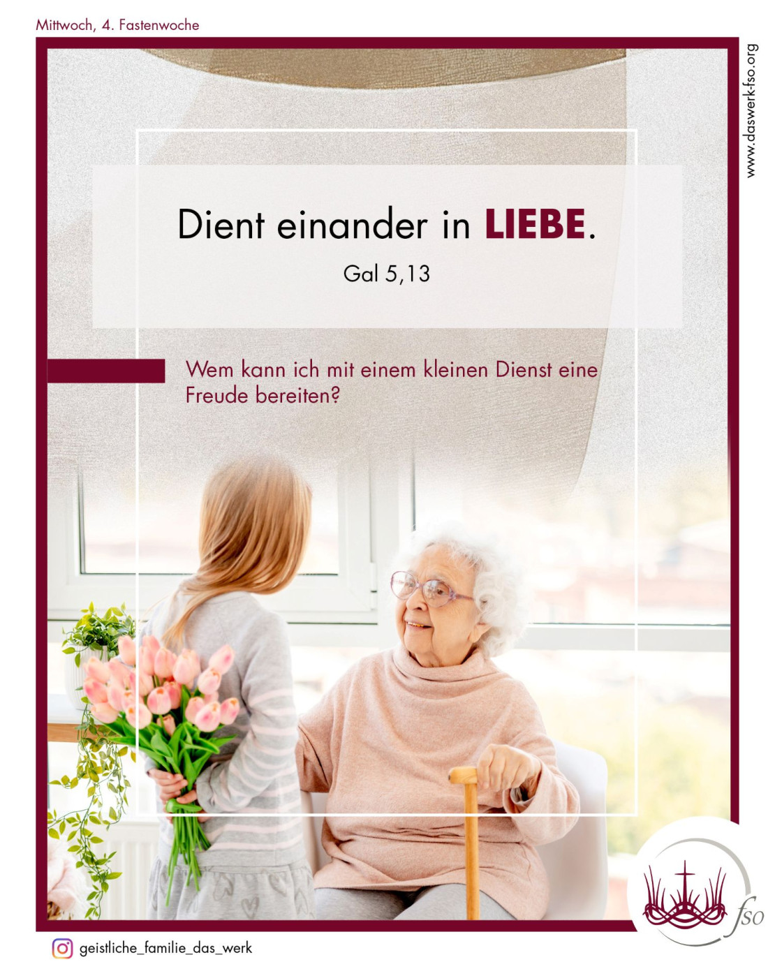 Fasten bedeutet nicht nur Verzicht auf etwas Äußerliches, sondern ein „Weniger Ich“ und ein „Mehr Wir“... Wer braucht meine Geduld, meine Zeit oder meine Hilfe?