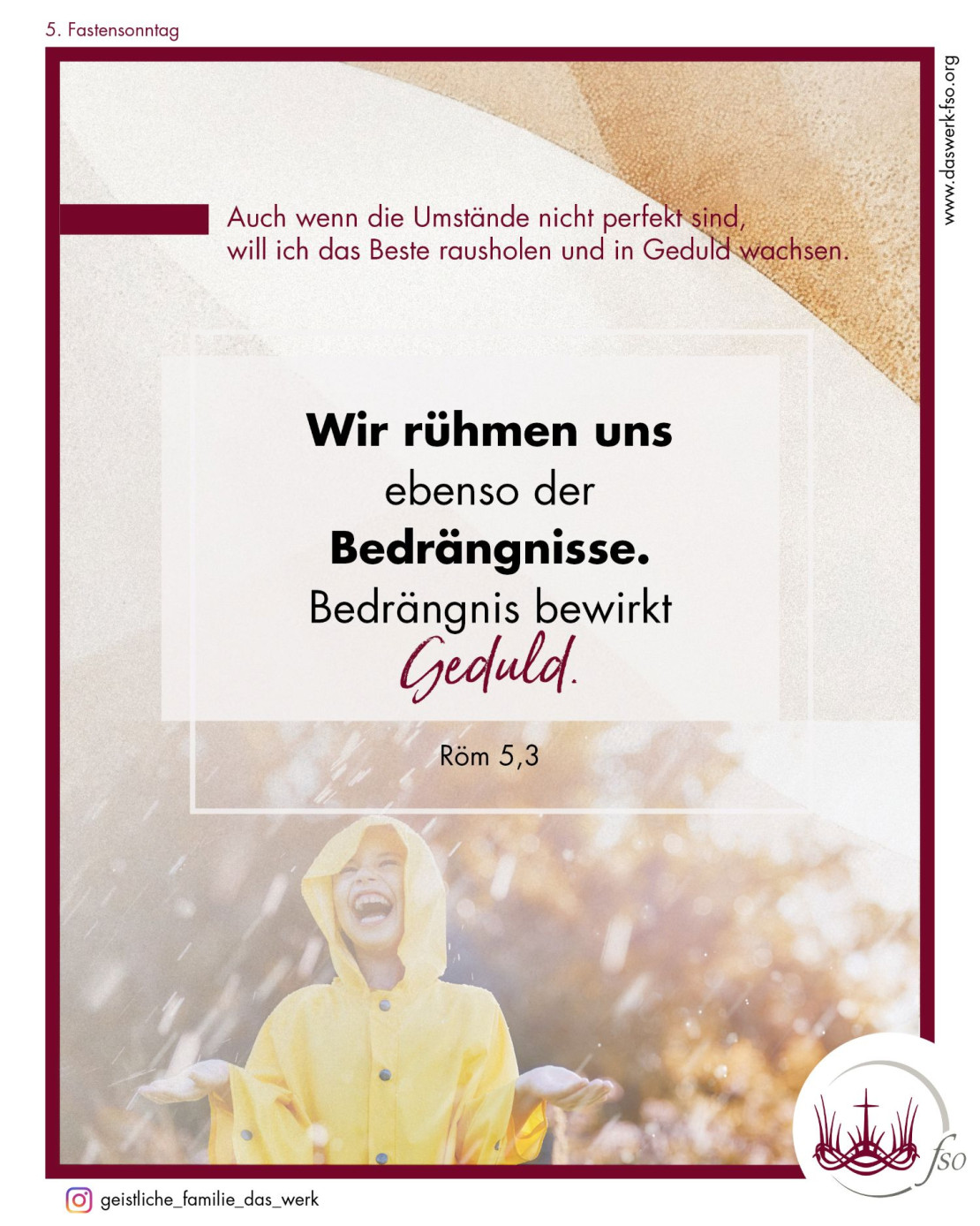 "Wir rühmen uns ebenso der Bedrängnisse. Bedrängnis bewirkt Geduld."