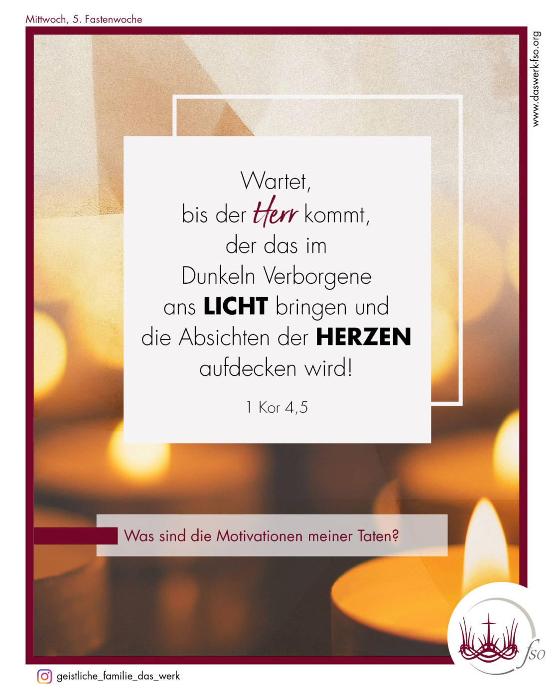 "Wartet, bis der Herr kommt, der das im Dunkeln Verborgene ans Licht bringen und die Absichten der Herzen aufdecken wird!"