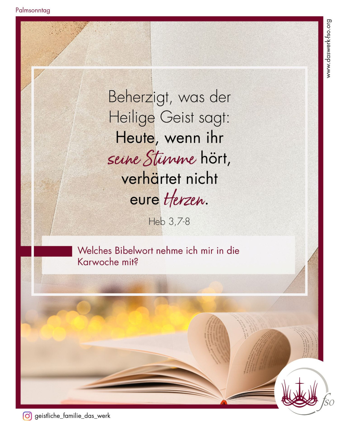"Beherzigt, was der Heilige Geist sagt: Heute, wenn ihr seine Stimme hört, verhärtet nicht eure Herzen."