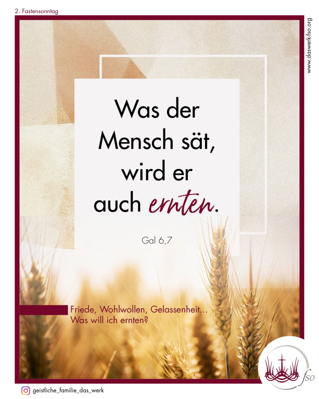 Ein anderes Sprichwort sagt: "So wie du in den Wald rufst, so kommt es heraus." In dieser Fastenzeit sollen wir gutes Saatgut reichlich streuen. Dann dürfen wir uns auch über eine schöne Ernte freuen.
