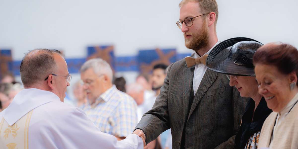 Ich kann mich daran erinnern, dass nach einer Hochzeit die Braut zu den Eltern ihres Mannes (also ihren Schwiegereltern) gegangen ist, beide umarmt hat und sagte: „Papa, Mama.“ Ähnlich wird – durch das, was Christus getan hat – sein himmlischer Vater unser Vater, und seine Mutter Maria unsere Mutter. Wir werden Teil einer großen neuen Familie. Du, lieber P. Kilian, darfst in und durch Christus Menschen zum barmherzigen Vaterherz Gottes führen – und ihnen helfen, Maria als ihre Mutter zu entdecken. Und die Menschen untereinander immer mehr als Geschwister. Wenn du als Priester zu uns allen „Brüder und Schwestern“ oder „Schwestern und Brüder“ sagst, ist das nicht, weil hier alle ausnahmslos blutsverwandt wären – auch wenn du eine große Verwandtschaft hast.